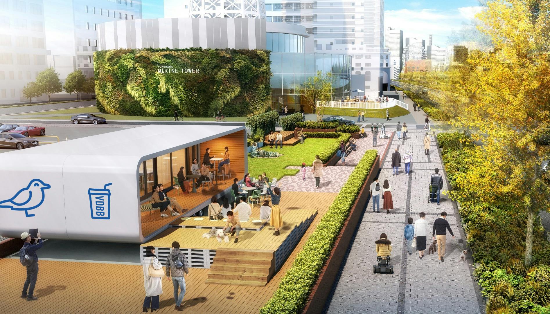 「VISITORS DOCK | Brew & Blend」は横浜のランドマーク マリンタワーのすぐ下、山下公園隣接の新しい横浜の新名所JP BAYSIDE HUB内に11月28日にグランドオープンするトレーラーハウスカフェです。シェアモビリティ拠点やイベントスペースが並ぶ開放的な空間に佇むカフェでは、スムージーやコーヒー、各地の恵みをご用意しています。
